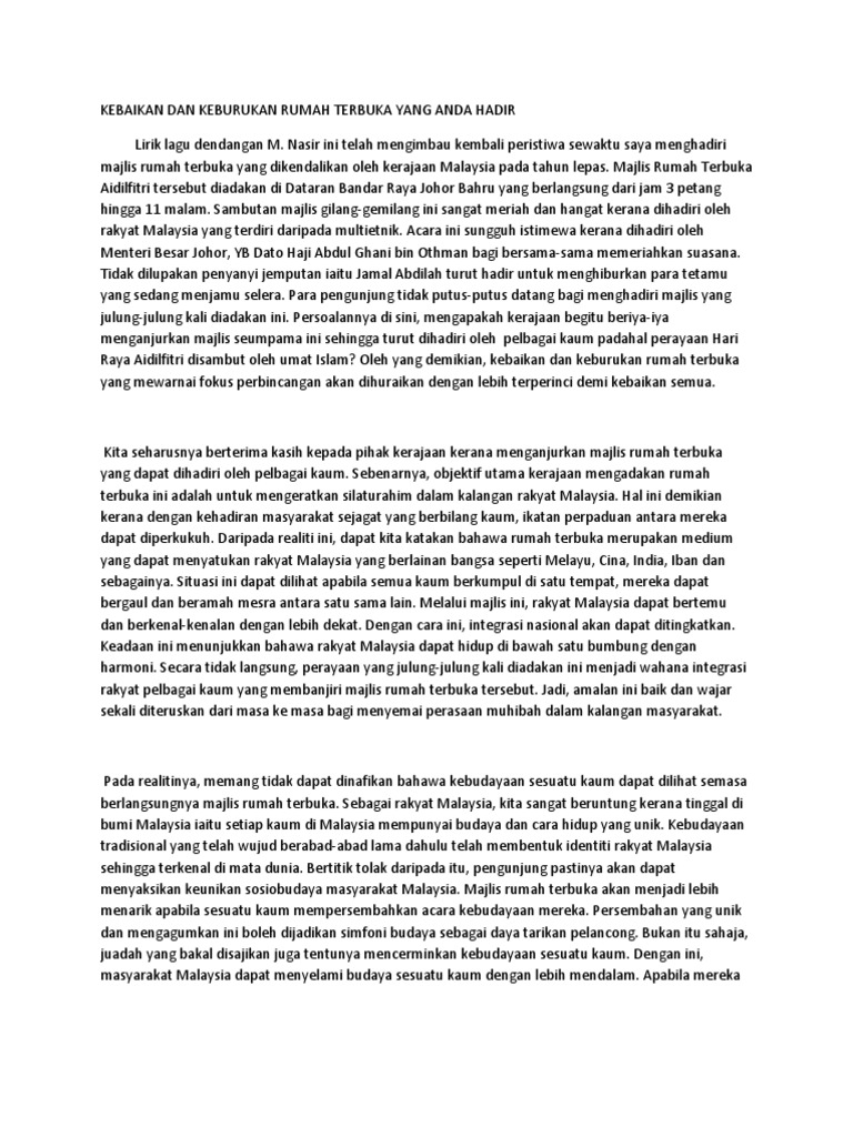 Kebaikan Program Rumah Terbuka / Hal ini kerana, semua ahli masyarakat bebas untuk menyertai rumah terbuka tanpa mengira kaum, bangsa, agama dan etnik.. Perayaan seperti ini tidak lengkap jika tiada rumah terbuka sehingga pelbagai lapisan masyarakat mengetahui istilah rumah terbuka yang. Berbagi cerita tentang kebaikan bersama allianz syariah. Kebaikan penganjuran rumah terbuka perkataan. Antara program itu melibatkan majlis rumah terbuka setiap kali perayaan yang disambut oleh rakyat di negara ini kerana program sebegini mewujudkan peluang rakyat untuk. Oleh yang demikian, kebaikan dan keburukan rumah terbuka yang mewarnai fokus perbincangan akan dihuraikan dengan lebih terperinci demi.